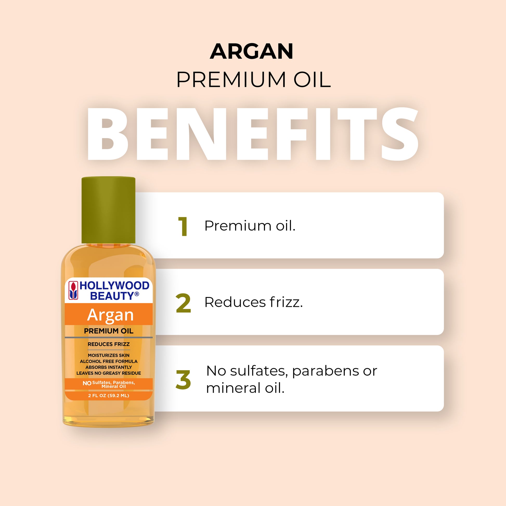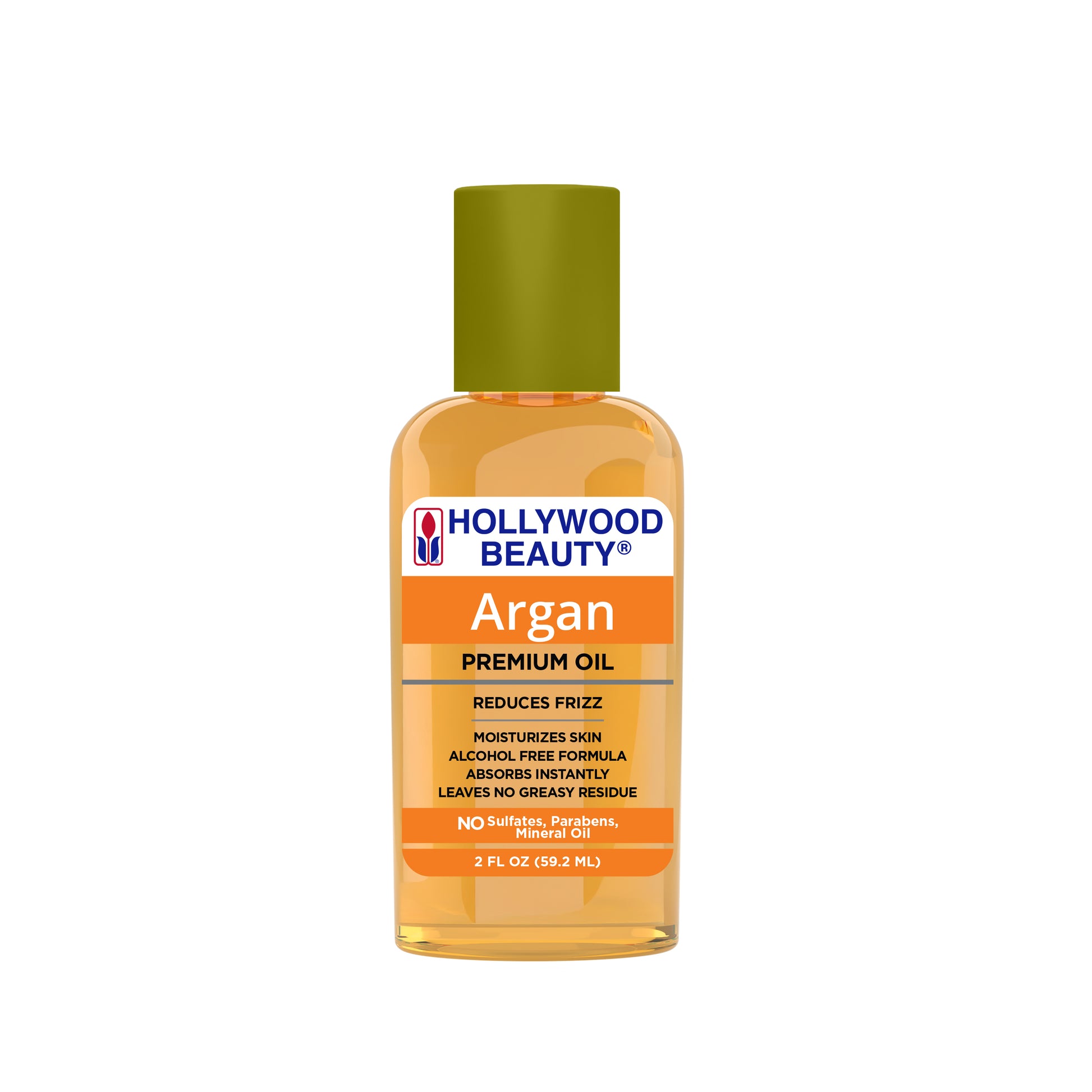 Hollywood Beauty Argan Premium Oil for Hair, Scalp, and Skin is an alcohol-free formula that deeply moisturizes, yet instantly absorbs, without leaving a greasy residue. It also helps reduce frizz and add shine to hair.