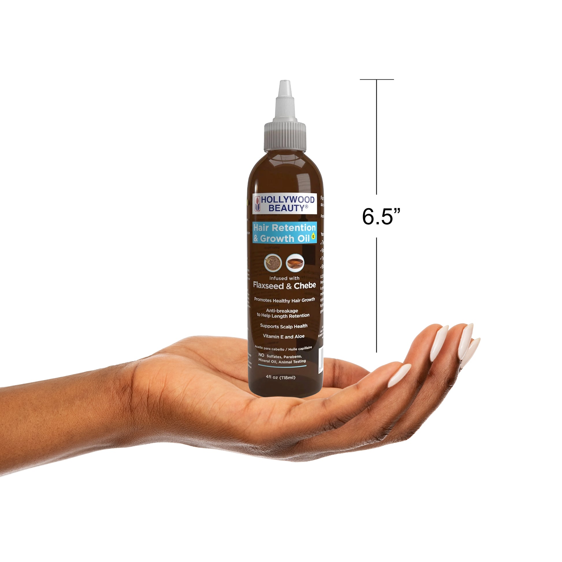 Hollywood Beauty Hair Retention & Growth Oil infused with Flaxseed & Chebe promotes healthy hair growth. It's also blended with Vitamin E and Aloe to support scalp health while helping with anti-breakage and length retention. Plus, it's formulated with no sulfates, parabens, mineral oil or animal testing.