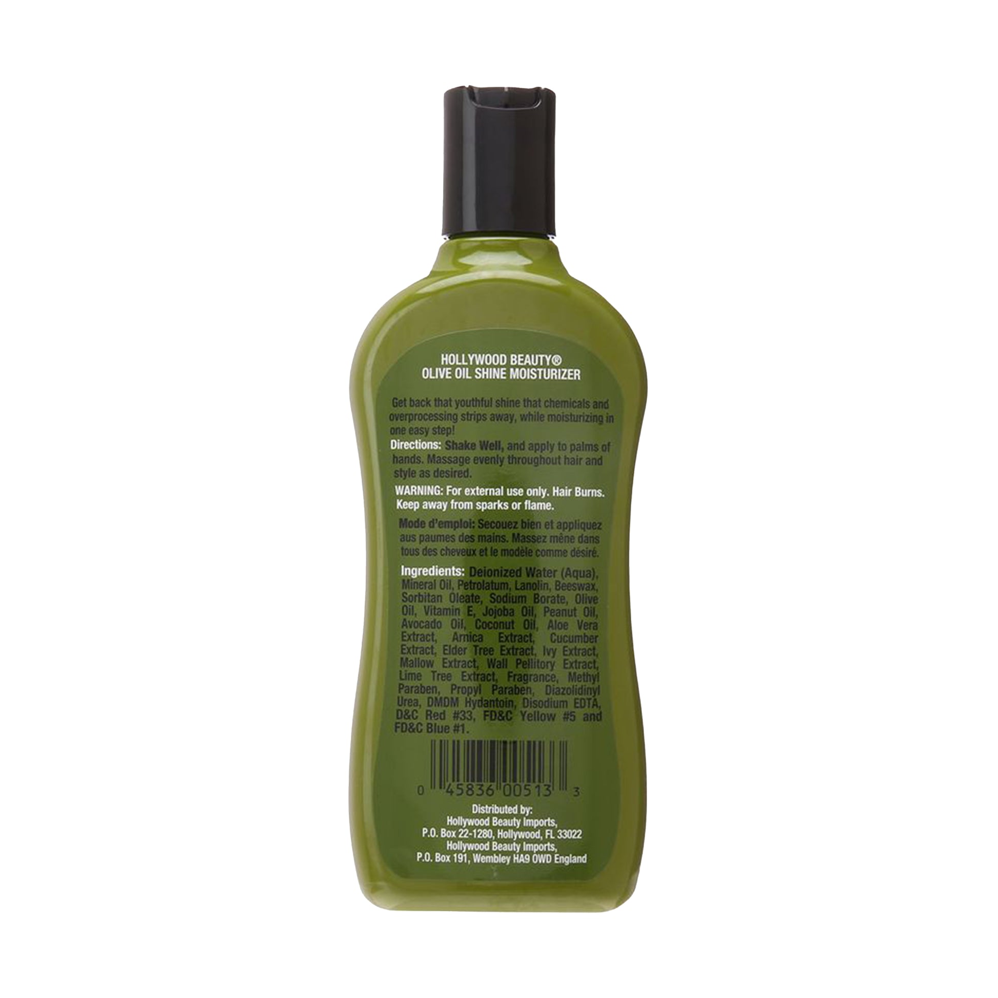 Hollywood Beauty Olive Oil Shine Moisturizer Hair Lotion shines and hydrates the hair in one step. Enriched with Vitamin E, nourishing oils, and shine extracts, it rejuvenates lackluster hair without using petrolatum. End the moisture-stripping effects of chemical treatments and restore your hair’s natural shine with the deep conditioning benefits of olive oil. This moisturizing formula promotes scalp health, prevents split ends, stimulates hair growth, and effectively manages dandruff. Great for all hair types and textures. It can be applied and left overnight for a deep conditioning treatment.