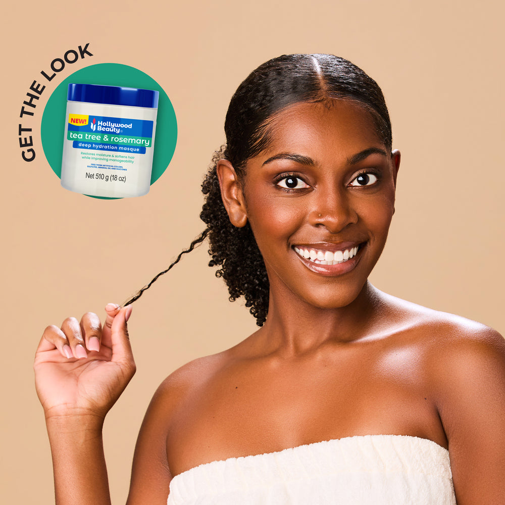 Replenish the moisture in your hair and scalp with our Hollywood Beauty Tea Tree & Rosemary Deep Hydration Masque, a rich and luxurious cream formula that penetrates to deeply nourish your tresses to soften and enhance manageability. This masque is the perfect last step of your maintenance hair routine to ensure your hair is ready for the next style. Experience the hydrating and soothing blend of Rosemary to combat irritation and add shine, Tea Tree to cleanse the scalp and hair, Shea Butter to deeply moisturize hair and scalp while sealing in hydration, and Aloe to soothe dry scalp and hair.